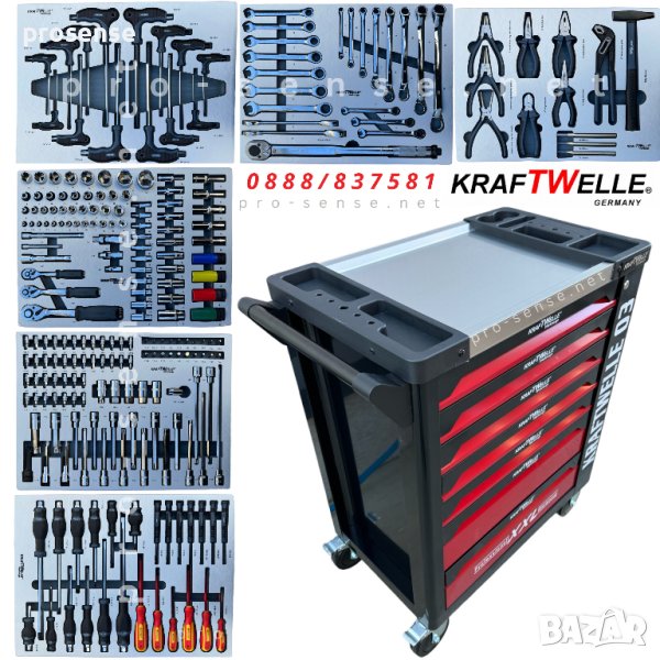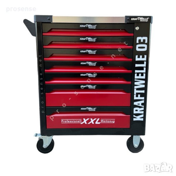 Количката KraftWelle с метален плот е със сдрава стоманена конструкция. Опция централно заключване на всички чекмеджета.
