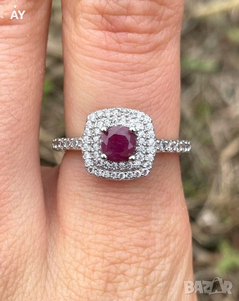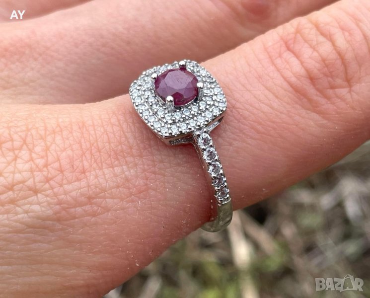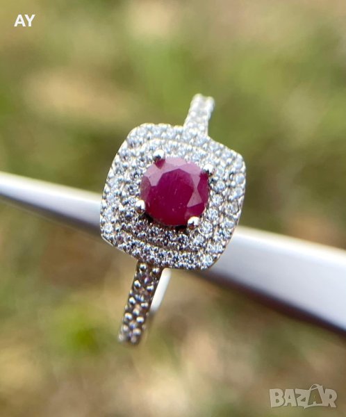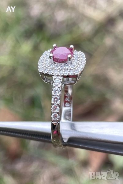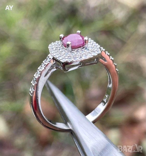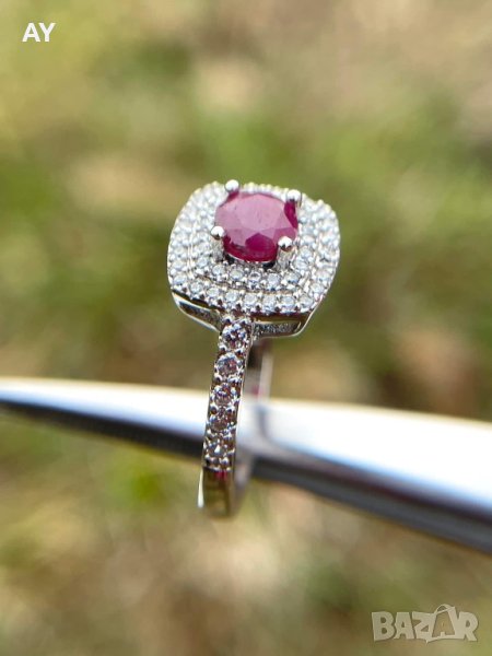 Сребърен пръстен с естествен рубин → Обява 43523514