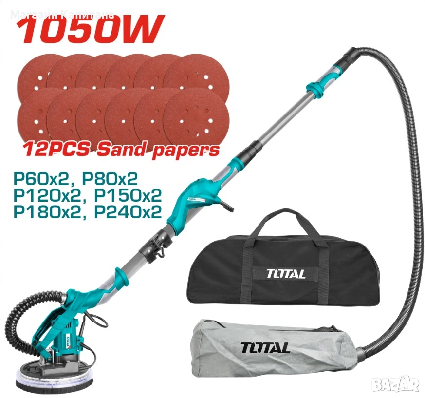 Машина тип "жираф", предназначена за шлайфане на гипсови мазилки, шпакловки и фуги на гипсокартон. Телескопичното рамо позволява да шлайфате стени и тавани, без нужда от стълба