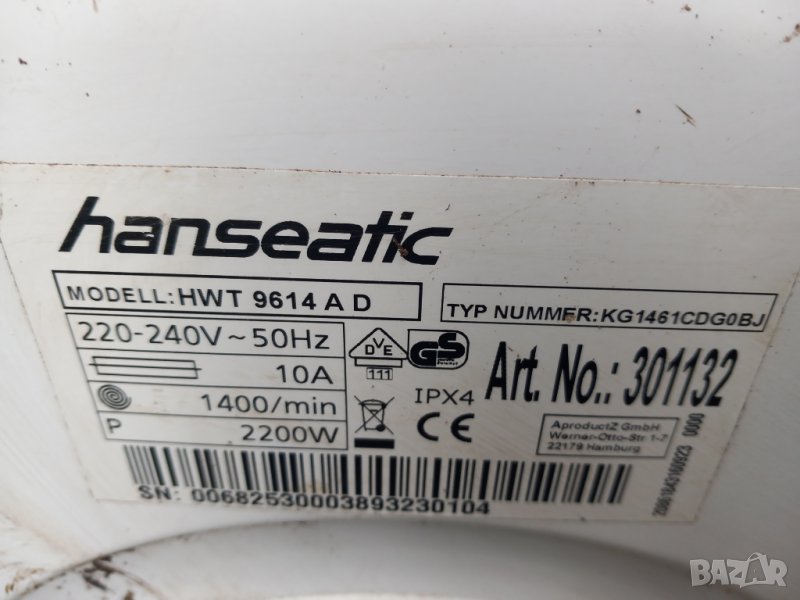 Продавам на части пералня със сушилня Hanseatic HWT 9614 → Обява 43532278