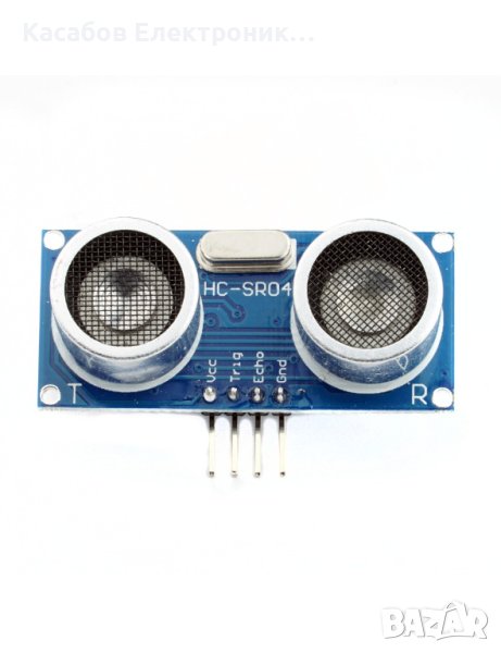 HC-SR04 е ултразвуков сензорен модул за измерване на разстояние и откриване на препятствия. Това е малък електронен компонент, който се използва за измерване на разстояние до обект на базата на сонар, т.е. измерва времето от момента на изпращане на ултразвуковата вълна, през отразяването й от препятствието, до връщането й към приемника.