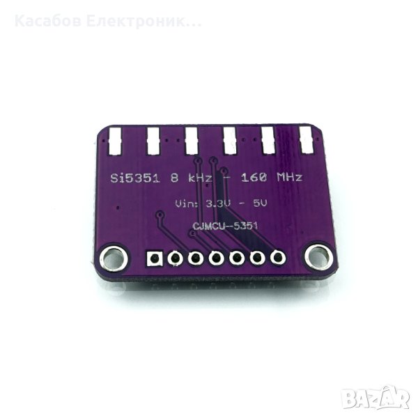 Генератор на сигнали, базиран на чип Si5351A, оборудван с 25MHz кварц и позволяващ независимо генериране на 3 изходни сигнала в диапазона от 8 kHz - 160 MHz.