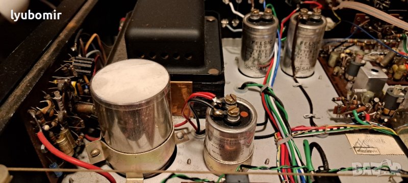 ламповите усилватели.Има огромен трансформатор, големи кондензатори, монтирани вертикално върху връзки на пръти, окабеляване от точка до точка под шасито.