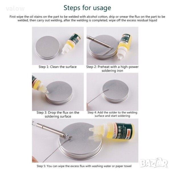 Използва се за запояване на алуминиеви проводници, както и за спояване на никел, мед, желязо и др.
