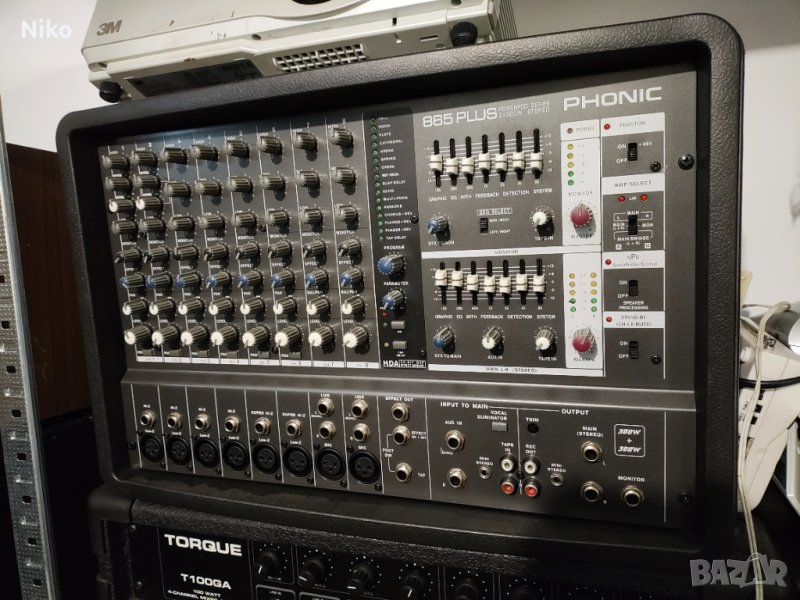 POWERPOD 865 Plus разполага с вградени DFX, 24-битови процесори за цифрови ефекти с 16 предварително зададени програми и жакове за крачен превключвател. Powerpod Plus включва контрол на основните параметри и закъснение при докосване. 3-лентовият EQ на всеки канал и двойният 7-лентов графичен EQ с откриване на обратна връзка ви дават максимален контрол върху вашия микс. В съответствие с ангажимента на Phonic да включи безжична технология в своите продукти, допълнителен безжичен микрофонен модул може да се добави към миксера. Вокалният елиминатор е чудесен за премахване на вокалите от песните за използване в караоке.