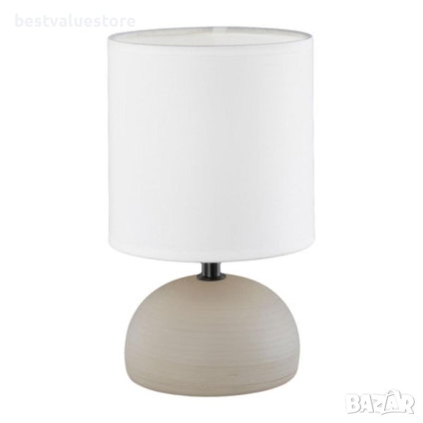 Осветително тяло с размери Ф14 х 230мм, мощност 1 х 40W и цокъл 1 х E14. Със своя стилен и модерен дизайн, настолната лампа е подходящо осветление за всяко помещение в дома. Основата на настолната лампа е изработена от керамика в цвят капучино, а абажурът е изработен от текстил в бял цвят. Осветителното тяло има степен на защита IP20. Красивата настолна лампа е чудесно решение за избор на допълнително или декоративно осветление във всяка стая. Настолната лампа е съвместима с енергоспестяващи крушки и с LED крушки с цокъл E14. Съответства на ЕС.