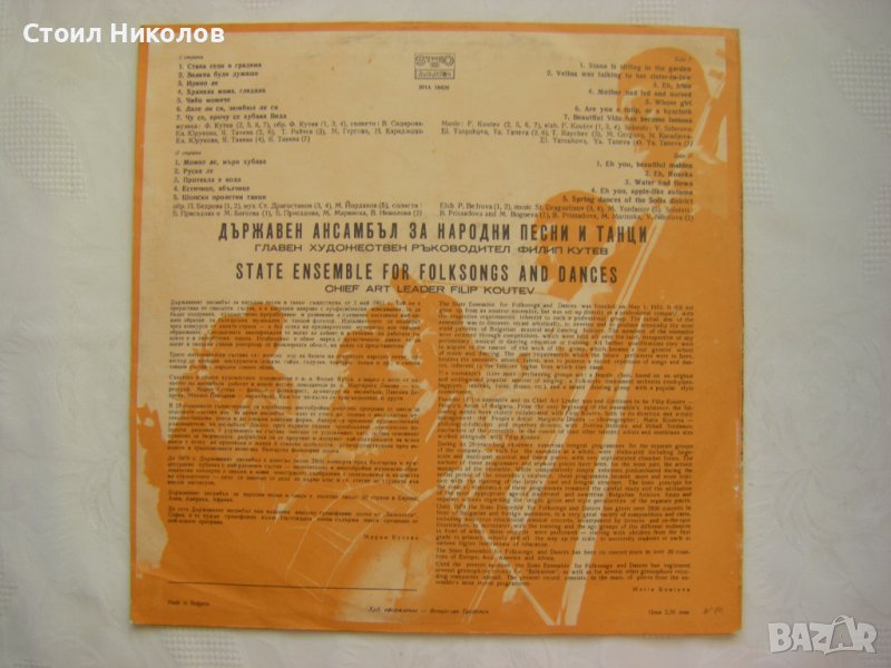 Грамофонна плоча - ВНА 10420 - Държавен ансамбъл за народни песни и танци с главен художествен ръководител Филип Кутев