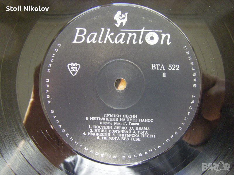Грамофонна плоча - ВТА 522 - Дует Нанос
