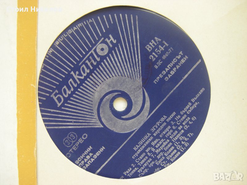 Грамофонна плоча - ВНА 2154 - Странджански народни песни изпълнява Калинка Згурова