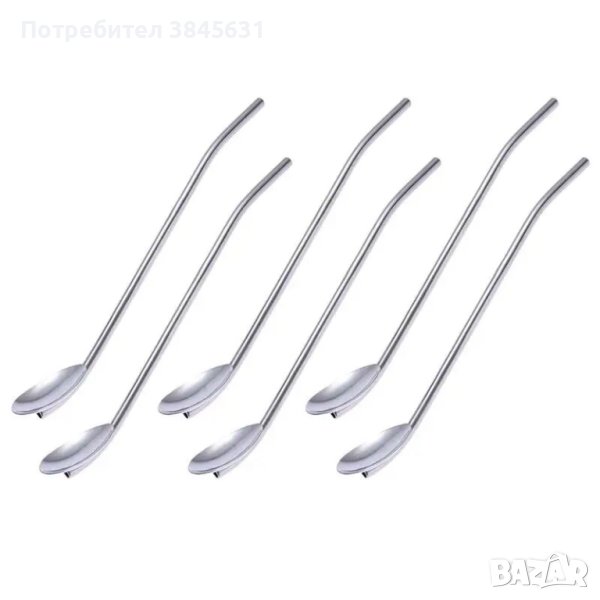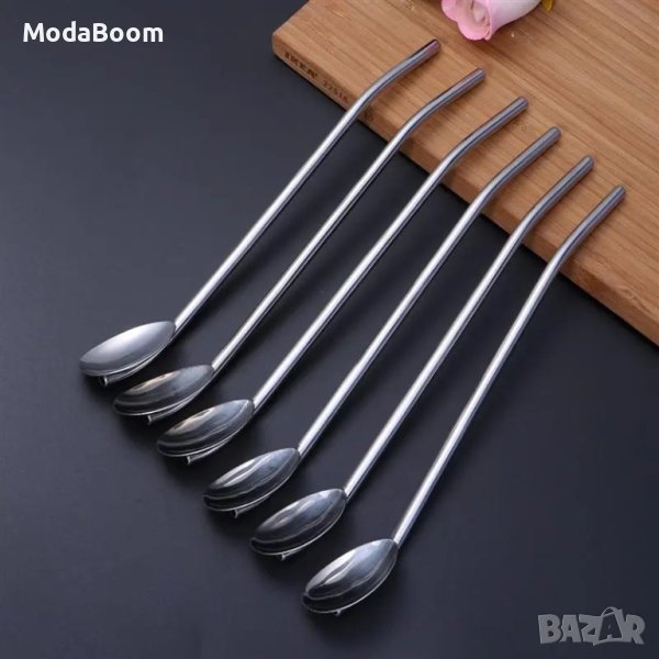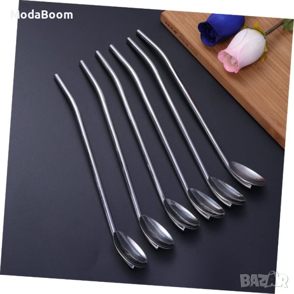 Висококачествени комплект от 6 броя метални лъжици със сламки 2в1 + ПОДАРЪК ЧЕТКА