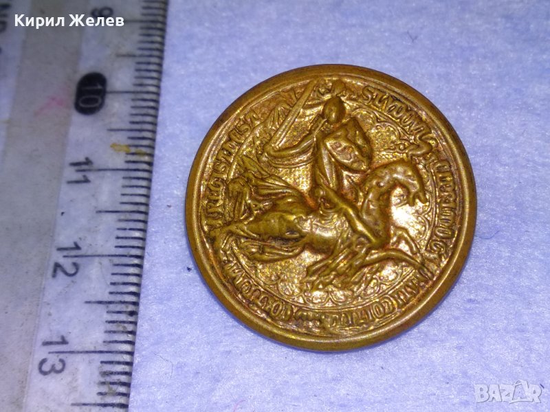 СТАРИННО ПОЗЛАТЕНО МЕТАЛНО КОПЧЕ с РИЦАР на КОН и НАДПИС МАЙСТОРСТКА ИЗРАБОТКА 41042