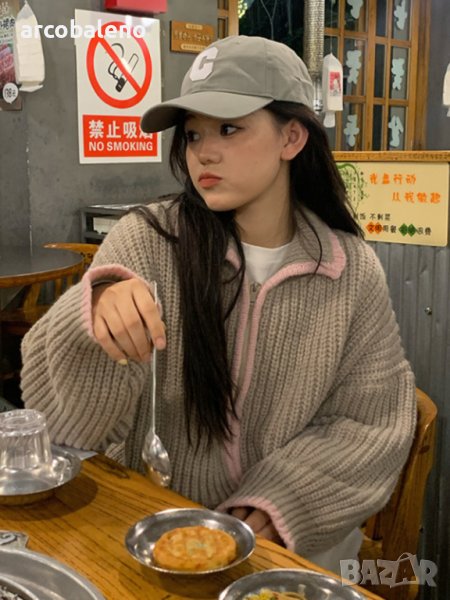Дамски широк плетен суичър с цип и ревер, 2цвята