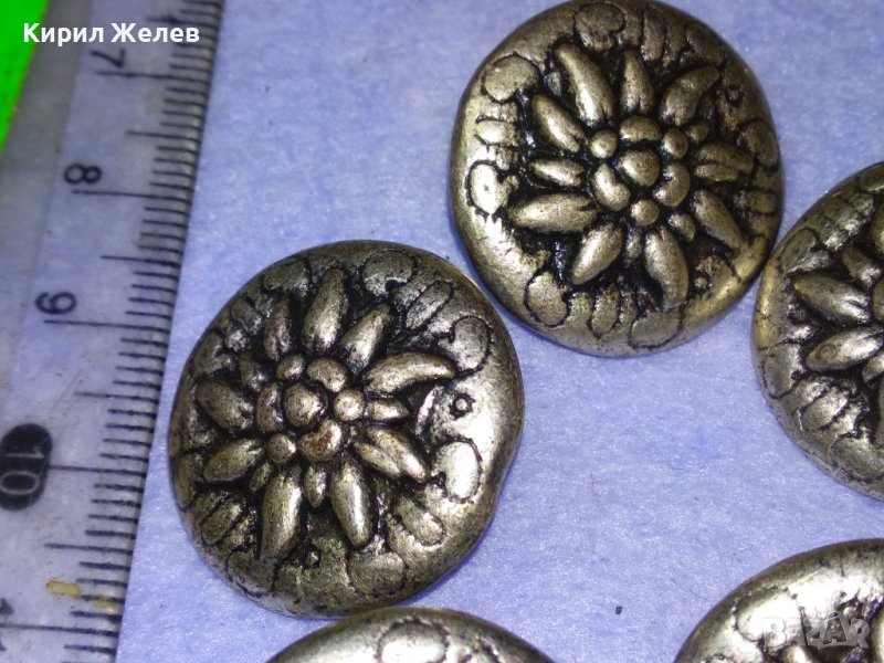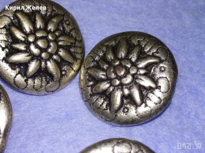 ЛОТ ПЕТ СТАРИ МЕТАЛНИ ПОСРЕБРЕНИ КОПЧЕТА с ЕДЕЛВАЙС За КОЛЕКЦИЯ ДЕКОРАЦИЯ 41053 → Обява 43551466