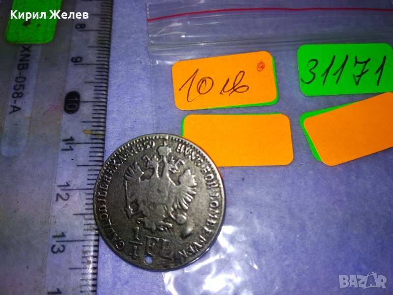СТАРО ПОСРЕБРЕНО Мет. КОПЧЕ Тип СТАРИННА МОНЕТА 1/4 ФЛОРИН на АВСТРО УНГАРИЯ За КОЛЕКЦИЯ ДЕКОР 31171