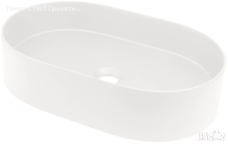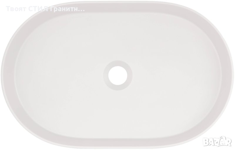 Бяла Овална Гранитна Мивка за Баня, Монтаж върху плот стояща Silia 550x350 мм