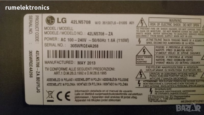 LG 42LN5708 на части, снимка 1 - Части и Платки - 43552501 LG 42LN5708 на части, снимка 2 - Части и Платки - 43552501 LG 42LN5708 на части, снимка 3 - Части и Платки - 43552501 LG 42LN5708 на части, снимка 4 - Части и Платки - 43552501 LG 42LN5708 на части, снимка 5 - Части и Платки - 43552501 LG 42LN5708 на части, снимка 6 - Части и Платки - 43552501 1/6