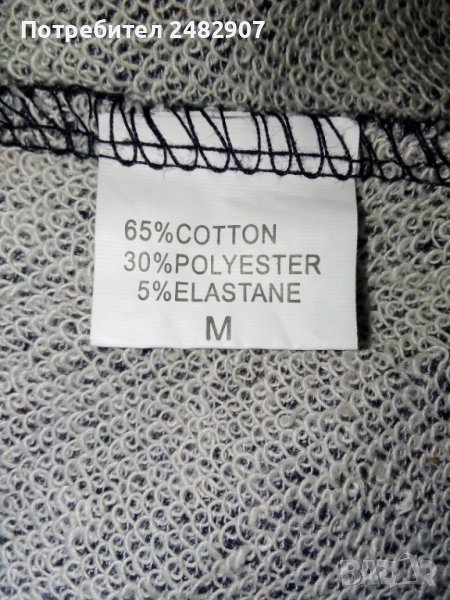 Сиво дамско долнище с връзки и два джоба с ципове на тях, размер М (умалено). Съдържа 65 % памук, 30 % полиестер и 5 % еластан. Ширина в талията - 32 см, дължина от талията до чатала - 25 см, дължина от талията до долу - 101 см, ширина на крачола в долната част - 10 см. Чисто ново, не е изоолзвано.