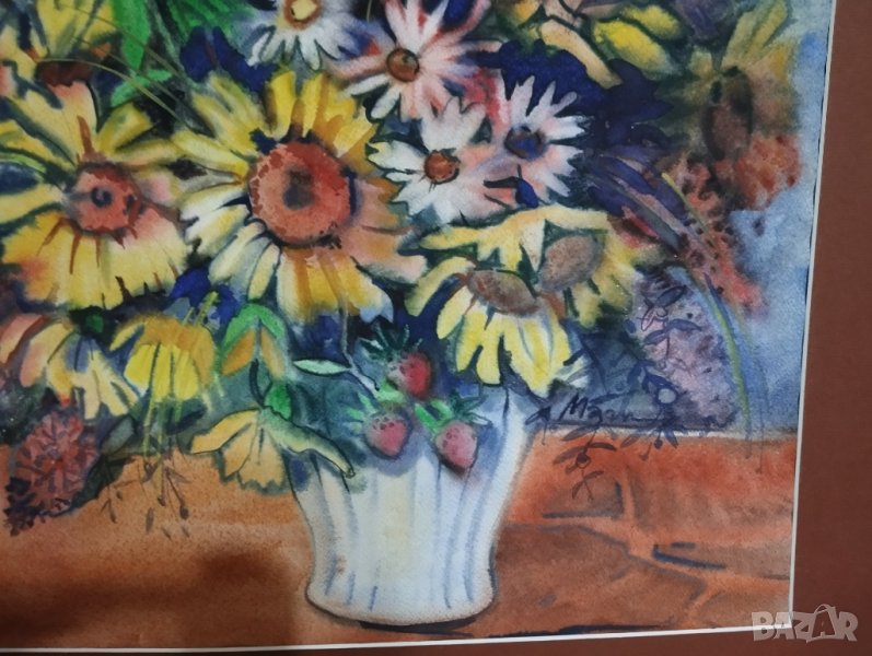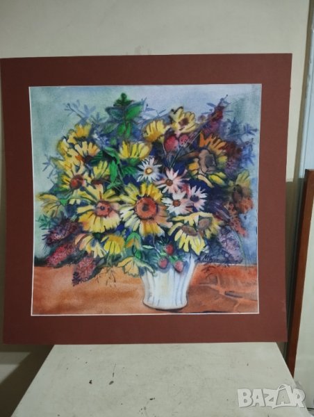 картина-цветя.техника акварел,гваш с размери 58см/58см,в паспарту с размери 72см/72см.