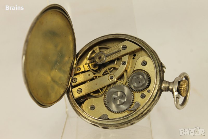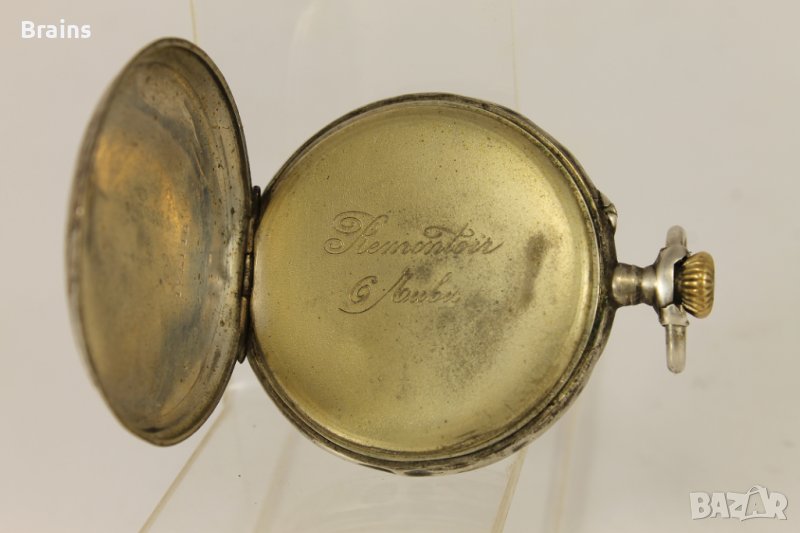 Швейцарски сребърен джобен часовник цилиндър от края на 19 век. Порцеланов циферблат със леки забележки. Филиграмни позлатени стрелки. Сребърна каса и сребърна халка. Капаците се отварят и затварят отлично. Отлично работеща машина.
