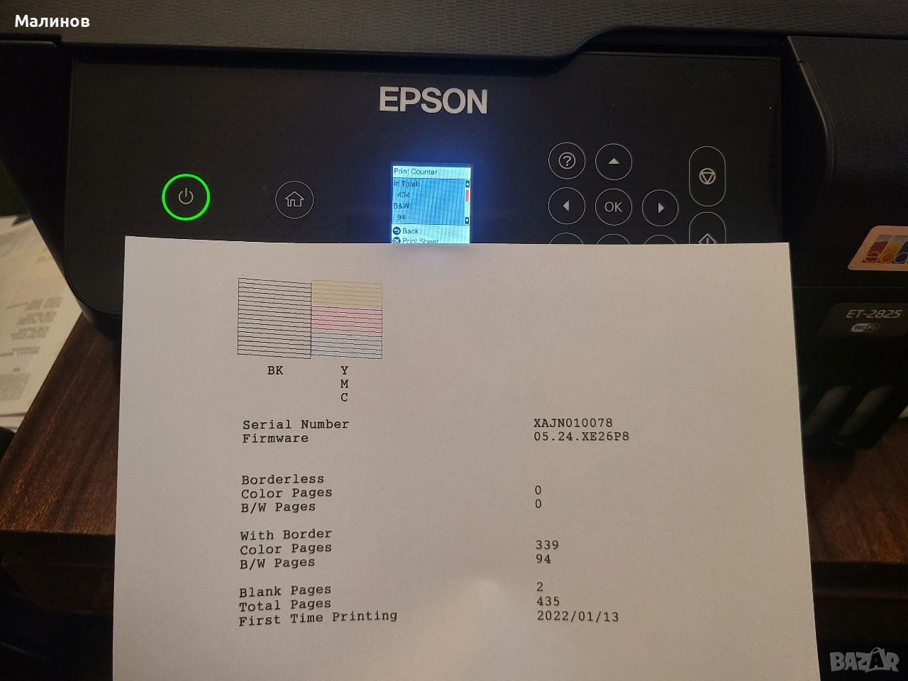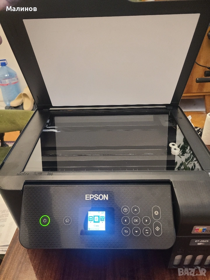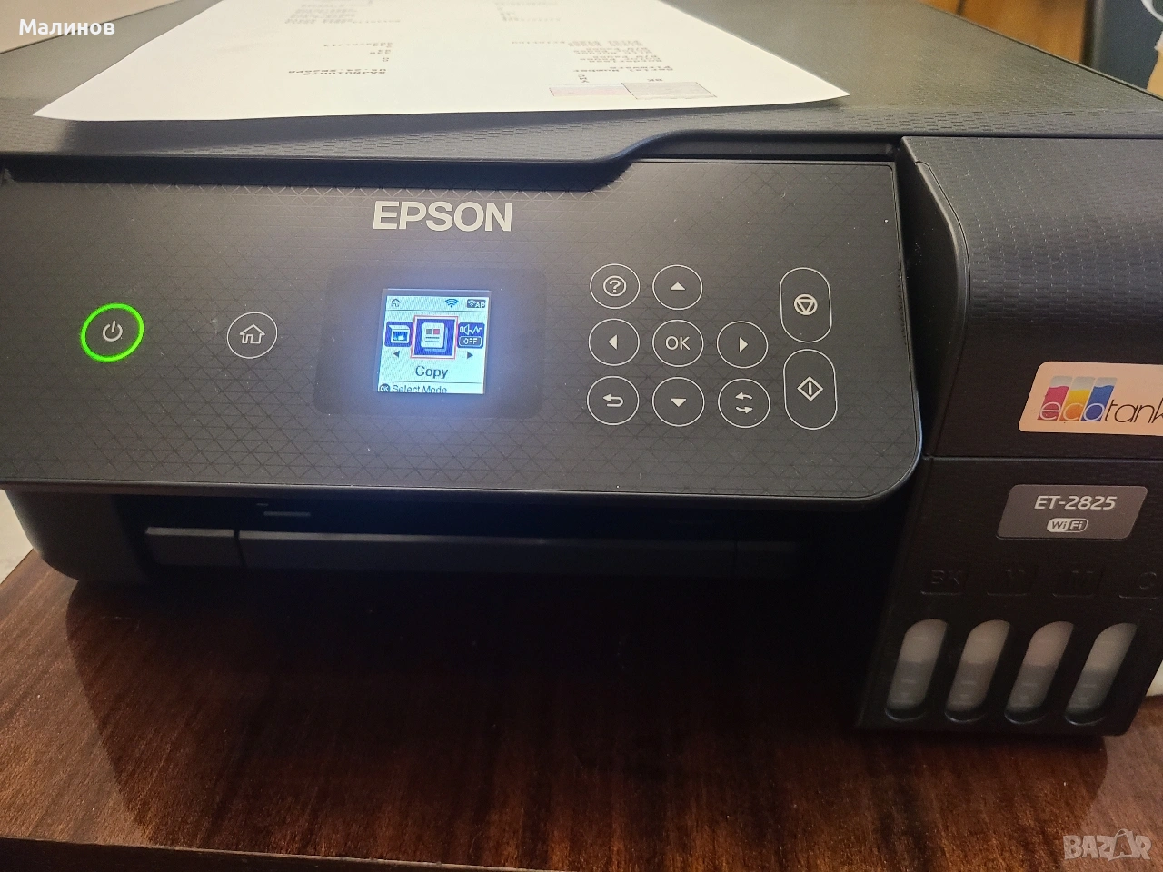Печата безпроблемно и изгодно, много надежден. Работи с 4 бутилки мастило по 70мл (цена около 24 евро за 4-те или 31 евро за 4х90мл сублимационно, имам и мастила), с които доливането на мастилa става буkвално за секунди, а печатането е евтино и изгодно. Може да изпечата няколки хиляди страници само с едно зареждане на мастило. Софтуерно нулиран е броячът за отпадно мастило, което значи, че има да изпечата още около 8000-10000 стр. до нужда от следващо нулиране (мога да го нулирам за Вас и впоследствие при нужда). Получавате го нулиран, все едно се купува от магазина!