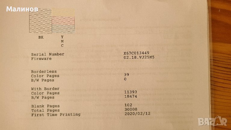 Печата всички цветове. Работи с 4 бутилки мастило по 70мл (цена около 44лв. за 4-те), с които доливането става за секунди, а печатането е евтино и изгодно. Може да изпечата няколки хиляди страници само с едно зареждане на мастило. Наскоро му е софтуерно нулиран броячът, което значи, че има да изпечата още около 8000-9000 стр. до нужда от следващо нулиране, което струва 20лв. и се прави онлайн.