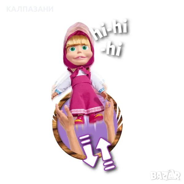 Забавлявай се с "Маша и мечока"! Сладката кукла Маша е облечена в костюма от филмчето. Куклата е с меко тяло и се смее, когато я разклатиш или подхвърлиш!