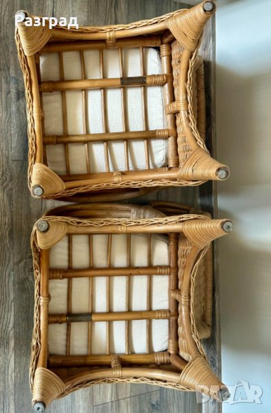 Два броя детски кресла от ратан и бамбук. Ретро стил, произведени 1970г в Индонезия. Снимана е маркировката. Шедьоври на майсторската ръчна изработка с прецизност към детайла на всяка извивка и сплитане. Високо качество и оптимален комфорт. Много добро състояние, с леки следи от употреба, без сериозни дефекти.