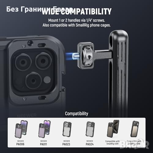 - Съвместимост с аксесоари: Подходящ за SmallRig и NEEWER кейджове с 1/4" резба.
