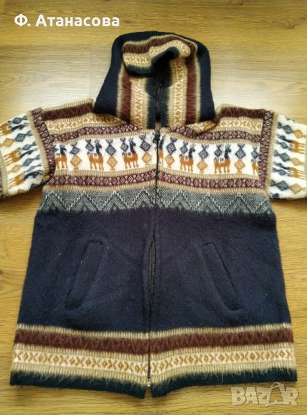 Супер топла и мекичка жилетка с качулка и типични шарки закупена от Еквадор и носена много малко, защото бързо умаля на сина ми.