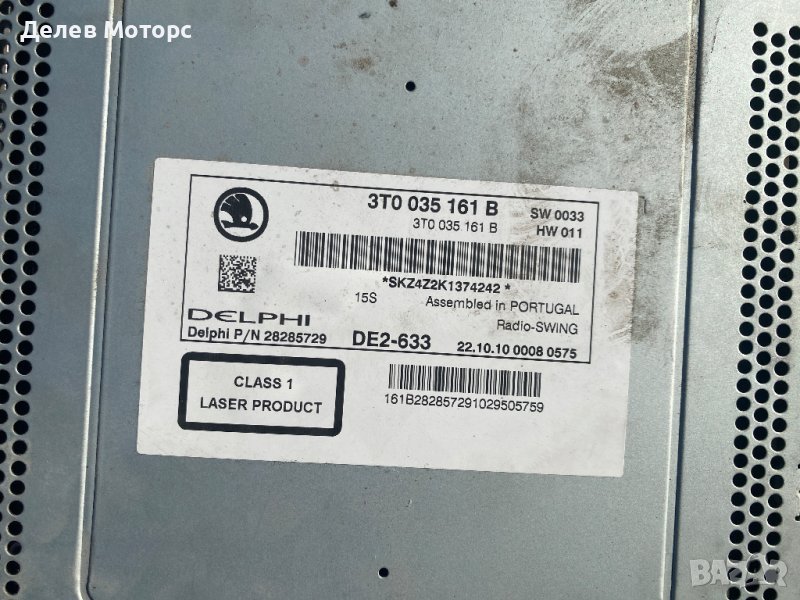 Радио CD плеър 3T0035161B за Skoda SuperB II 2008-2015г. в автоморга Delev Motors, между с. Каменар и с.Куманово гр. Варна.