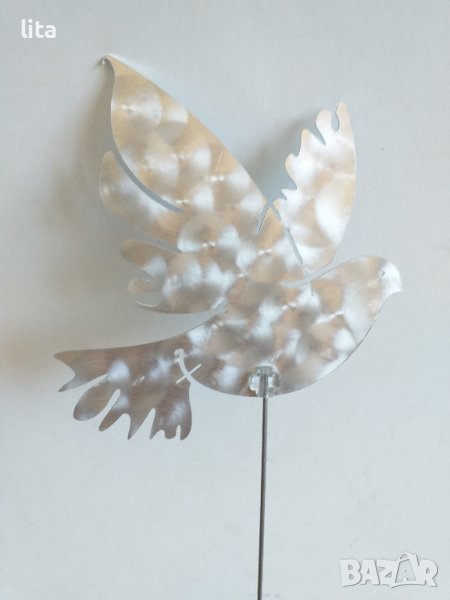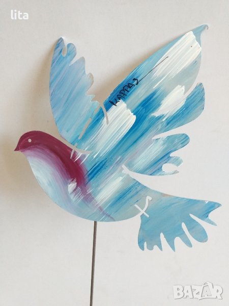 Красива интериорна статуэтка, изработена от арт ГалерияМатериал: птицата и дръжката са метални, основата - пластикРазмери: височина - 40 смосновата 4 х 4,5 см