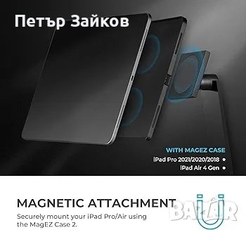 iPad Pro 2018/2020/2021 или iPad Air 2020, или магнитният стикер, който включихме в пакета, е необходим за работа със стойката.