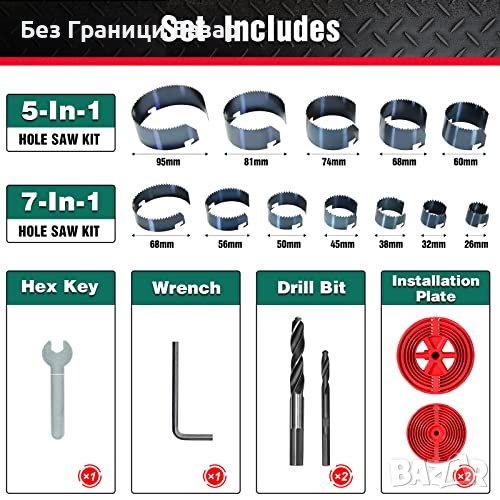 Нов комплект ножове за дупки от пружинна стомана HYCHIKA, с 12 БР. 26 mm-95 mm остриета за трион