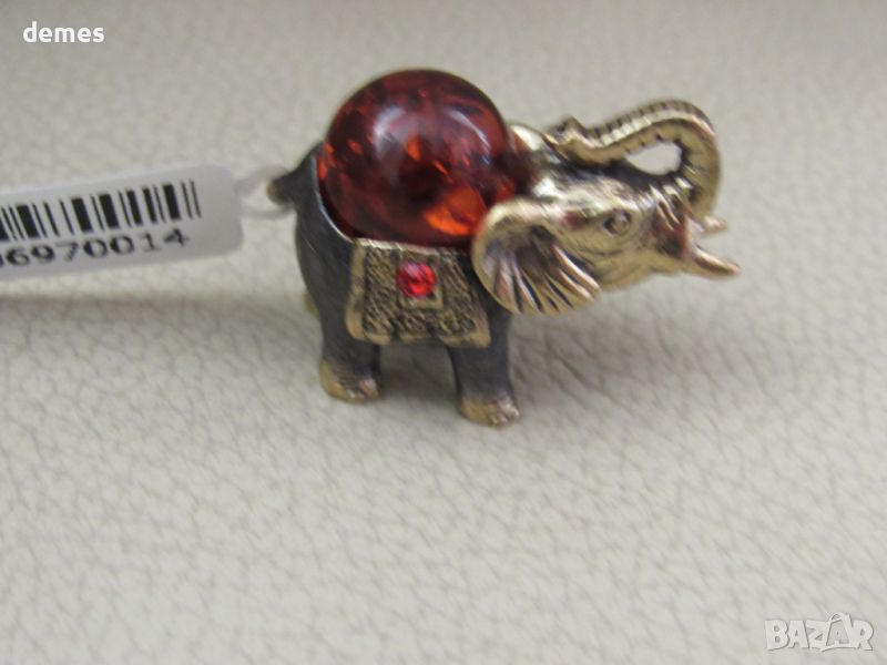 Фигура на слон-бронз и първокласен балтийски кехлибар-коняк и мед → Обява 43570405