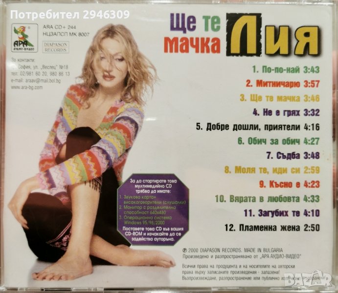 Лия - Ще те мачка(2000), снимка 1 - CD дискове - 43570569 Лия - Ще те мачка(2000), снимка 2 - CD дискове - 43570569 Лия - Ще те мачка(2000), снимка 3 - CD дискове - 43570569 1/3