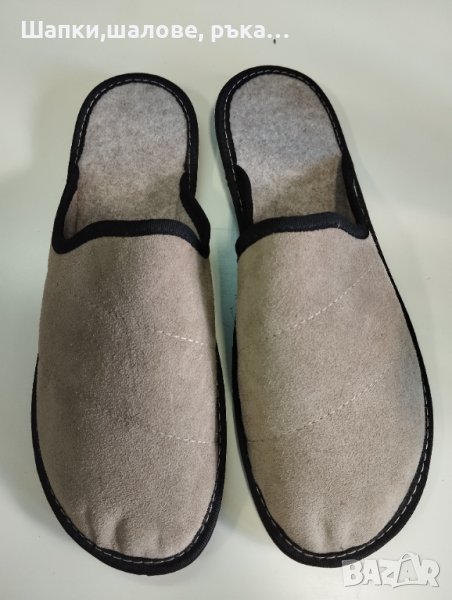Български мъжки,кожени пантофи във модерно бежов цвят.