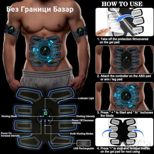 Нов Мултифункционален EMS Стимулатор за корем Ръце Талия USB Зареждане