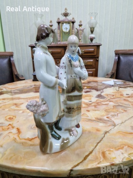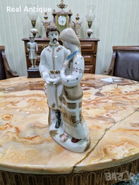 Продавам чудесна много красива антикварна украинска порцеланова фигура статуетка композиция в много добро състояние без никакви забележки с наличните маркировки. Височина 27 см. Прекрасно допълнение към интериора на Вашия дом офис вила. Подходяща и за подарък. Работя с всички куриери. Отговарям бързо.