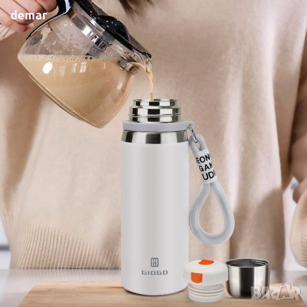 GIOGD Термоизолирана вакуумна спортна бутилка за вода от неръждаема стомана 700 мл, бяла