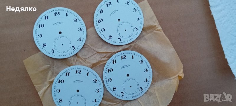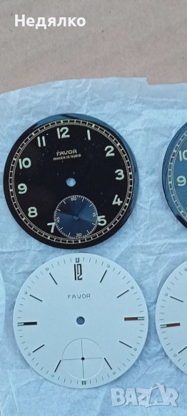 Чисто нови оригинални винтидж циферблати за джобни часовници.Цената е само за 4 броя Favor от първите 6 снимки,другите са илюстративни.Имам стотици оригинални циферблати нови ,само няколко употребявани,но в отлично състояние,джобни,ръчни,мъжки и дамски,за сериозни,при интерес на телефона.
