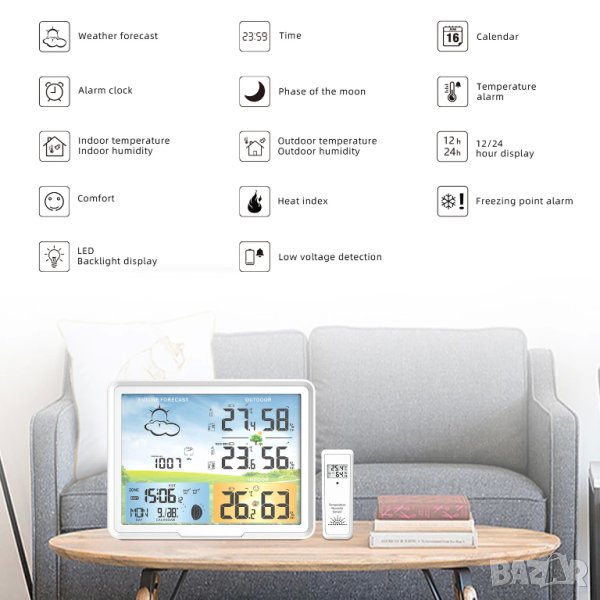 Позволява проследяване на външните и вътрешните климатични условия — полезно за комфорт, за растения, за контрол на околната среда в дома.