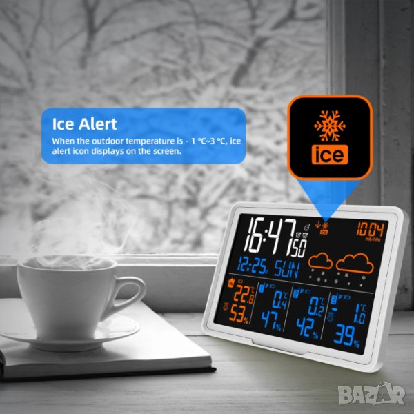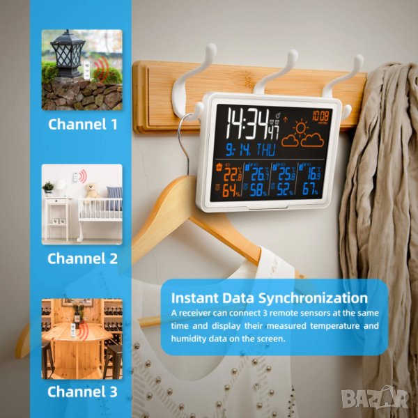 Тази метеостанция е практично устройство за всеки дом, офис или работно пространство, което искаш да следиш климатичните условия, да планираш своите ежедневни дейности според времето и да имаш точни показания за температура и влажност както вътре, така и навън.