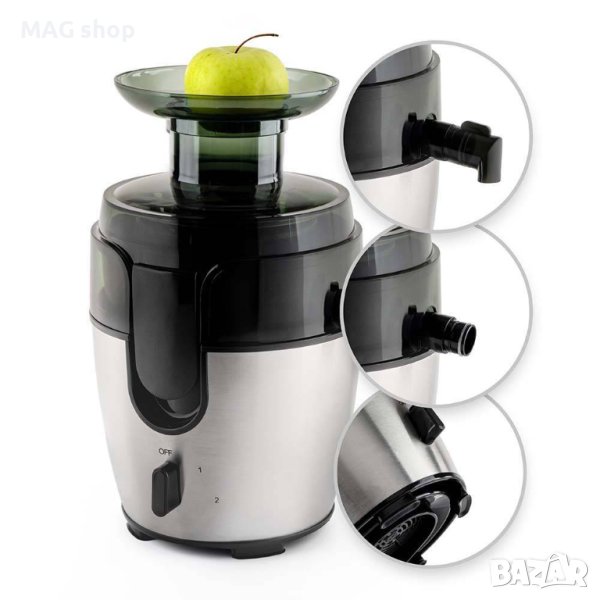 Сокоизтисквачка , подходяща за изцеждане на цели меки и твърди плодове и зеленчуци - ябълки , круши , моркови , цитруси и много други. Подходящи за заведение, както и за домашна употреба.