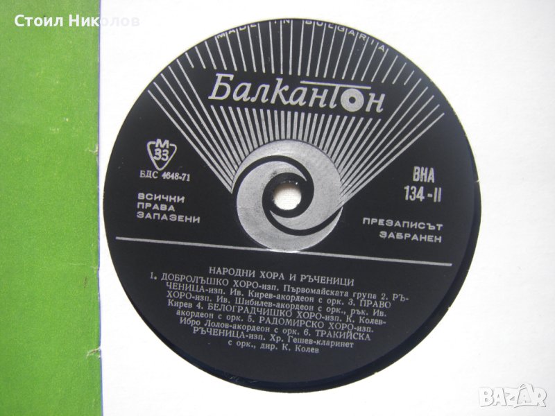 Грамофонна плоча - ВНА 134 - Народни хора и ръченици
