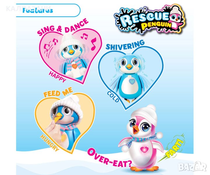 Антарктида... най-южният покрит с лед континент е дом на много пингвини. Но това местообитание е постоянно застрашено от глобалното затопляне и замърсяването на водата, което се отразява на живота на пингвините. Сега този пингвин се нуждае от вашата помощ! Нека го спасим! Спасете пингвина, като изчистите мръсотията по него! Използвайте вълшебна кърпа, за да почистите пингвина и да отключите интерактивните му функции за светлина и звуци. Сърцето на пингвина променя цвета си според емоциите му: Продължавайте да го потупвате по корема или рамото и гледайте как сърцето му бие по-бързо с песни и танци. Когато пингвинът замръзне и посинява, облечете го, като използвате вълнена шапка, шал и жилетка! Нахранете пингвина с рибената бисквита, но не го хранете твърде много или ще пръцне! Погрижете се за пингвина и той ще бъде най-добрият ви приятел завинаги!