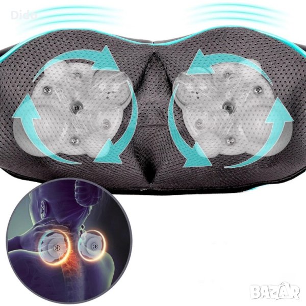 Забравете за ежедневния стрес и напрежението във врата с уреда за шиацу масаж.ШИАЦУ МАСАЖ – Нашият уред е снабден с иновативна масажна система, която имитира шиацу масаж , който идва от Далечния изток и включва намаляване на болката и умората в мускулите и ставите. Това е като истински релаксиращ масаж в уюта на вашия дом!ОТПУСКАНЕ НА МУСКУЛИТЕ Благодарение на дълбокия масаж, нашият продукт помага за отпускане на напрегнатите мускули и намаляване на напрежението. Това е идеалното решение след тежък работен ден или интензивна тренировка.ТЕРАПЕВТИЧНА ТОПЛИНА Функцията инфрачервено (IR) нагряване допълнително отпуска и успокоява мускулите. Истинска наслада е през зимните вечери!ПРОСТО УПРАВЛЕНИЕ Удобното управление ви позволява да настроите масажа според вашите индивидуални предпочитания. Можете да изберете режим на масаж, интензивност и топлина с едно докосване.ПРИЛОЖЕНИЕМасаж на гърбаМасаж на вратаМасаж на раменетеМасаж на горни и долни крайнициМасаж на желани части от тялотоМасажорът имитира движенията на истински масажист. Това не е обикновен масаж – това е дълбока пресотерапия, която достига до източника на мускулно напрежение.Загряващата функция прави масажа още по-отпускащ. Топлината прониква в мускулите, повишава ефективността на масажа и носи облекчение. Това е чудесен вариант, особено в по-студените дни , когато имате нужда от допълнителна топлина. МАСАЖ ПО ВРЕМЕ НА ПЪТУВАНЕЗа много от нас дългите пътувания с кола могат да бъдат натоварващи и да доведат до болки във врата. Масажорът е компактен и лесен за транспортиране, което означава, че можете да го вземете със себе си, когато пътувате.Благодарение на източника на захранване от запалката на автомобила, можете да се насладите на дълбок шиацу масаж дори докато пътувате.Това е отличен начин за освобождаване на напрежението и стреса по време на дълги пътувания.СпецификацииЦвят: черен/синДължина на захранващия кабел: 1,5мКонтролен панел: интегриранМощност : 24W ОСНОВНИ ХАРАКТЕРИСТИКИЧаст от тялотоТяло Шия Гръб Рамена Корем Дупе Бедра Прасци БюстТип уелнес уредУред КоланТип употребаДомашна ПолупрофесионалнаИзползване заМасаж ТонизиранеТип задвижванеЗатопляне Мобилна ролка Инфрачервена светлина Ротационно движениеМатериалИзкуствена кожаФункцииШиацу масажЦвятЧерен/ТюркоазСъдържание пакет12V адаптер за гнездо за кола 1 x Мрежов адаптер 100 – 240 V Уред за масаж