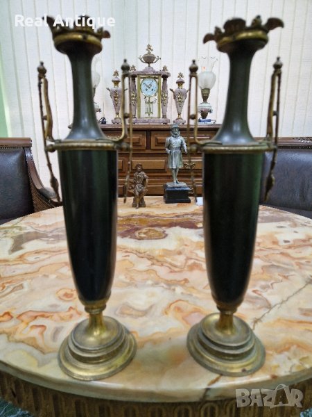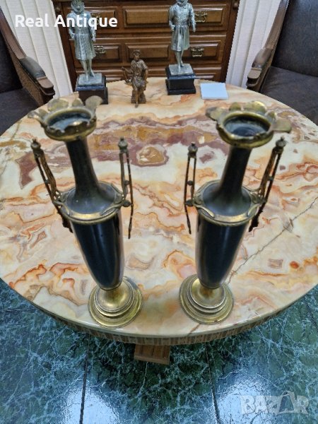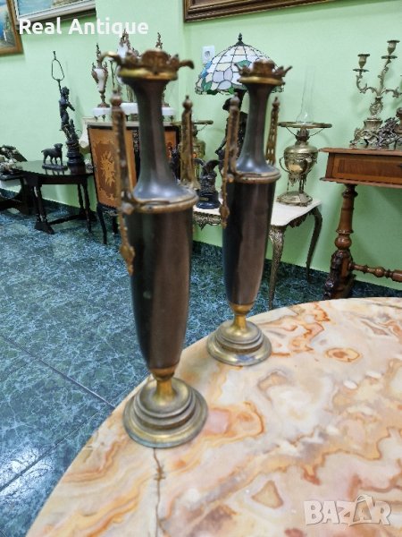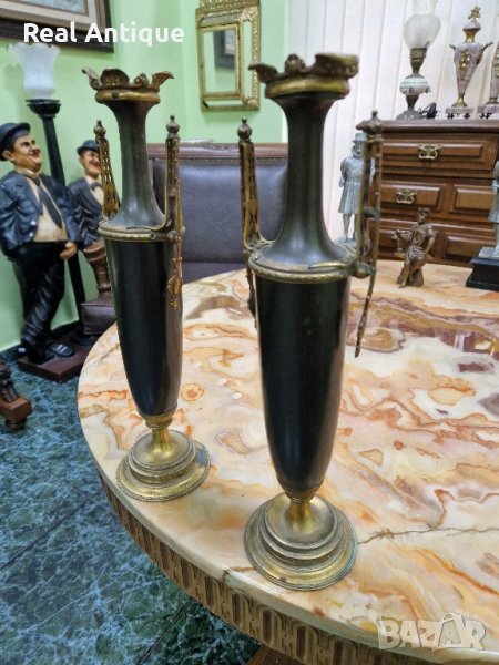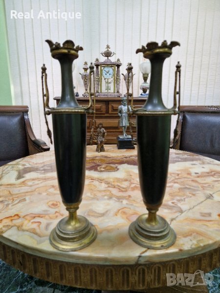 Продавам чифт страхотни антикварни белгийски амфори вази от бронз месинг в много добро състояние без забележки. Височина 36 см. Прекрасно допълнение към интериора на Вашия дом офис вила. Подходящи и за подарък. Работя с всички куриери. Отговарям бързо.
