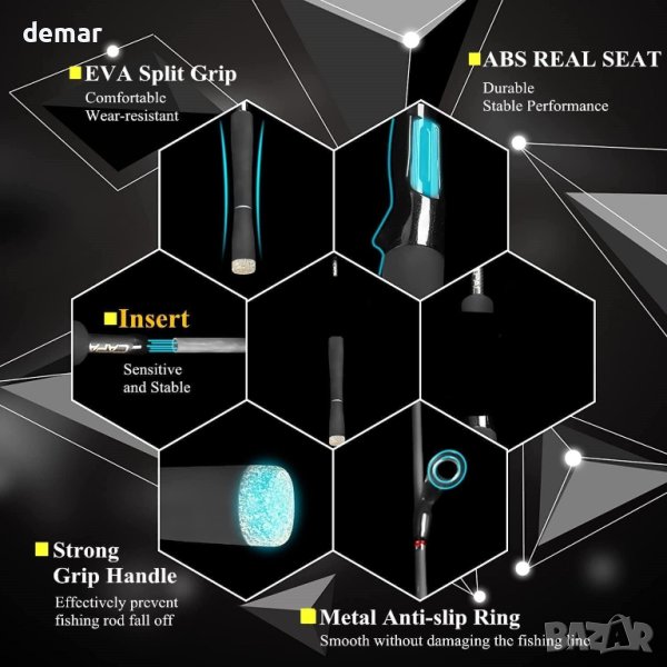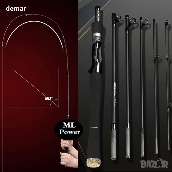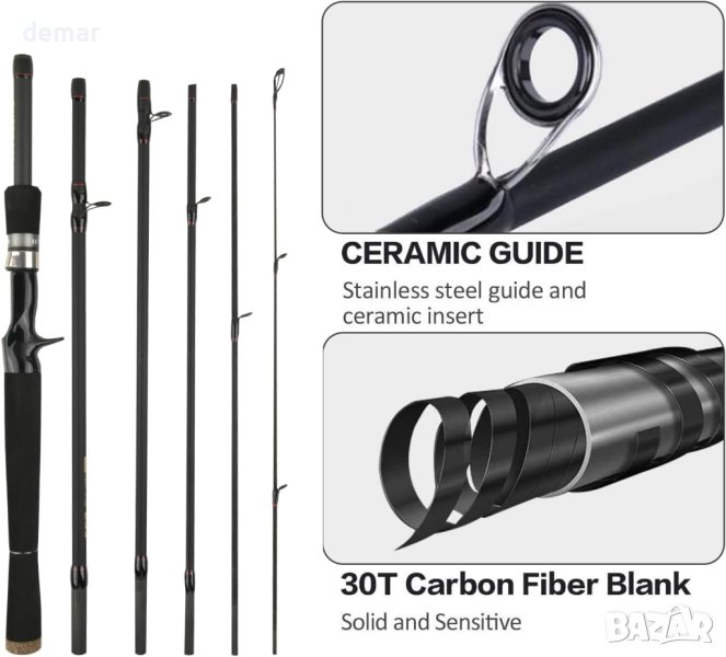 Многосекционната въдица BNTTEAM е лека и преносима опция, сгъваема до по-малко от 16 инча и тежаща само около 125g/4.4oz за лесно пътуване. Изработен от висококачествен карбон, той предлага отличен баланс и чувствителност, като същевременно остава твърд и издръжлив. Перфектен за риболов в движение, той ви позволява да пътувате до любимите си места и да се наслаждавате на риболова, когато и където пожелаете. Комбинацията от въглеродни влакна с висока плътност и фибростъкло осигурява издръжливост и устойчивост на корозия от морска вода. Въдицата разполага с висококачествени водачи с керамични вложки за по-дълги замятания и намалено триене на линията. Тези водачи също имат циркониеви вложки, предлагащи отлична производителност, твърдост, разсейване на топлината и ниско триене. Макародържачът е прецизно позициониран и балансиран за повишена издръжливост, подобрена дистанция на замятане, чувствителност и контрол на борбата с рибата. EVA дръжката е удобна за хващане, издръжлива и осигурява отлична устойчивост на приплъзване.