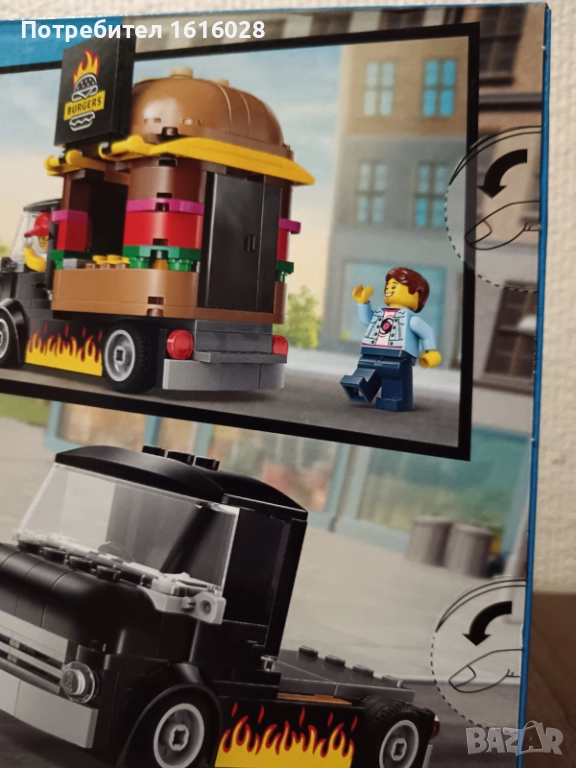 Заредете камиона с хамбургери и се насочете към хипстърския квартал на LEGO City. С гигантски хамбургер отгоре, мобилното заведение за бързо хранене може да се отдели от камиона и се предоставя с детайлна зона за приготвяне на храна, подправки и капак за обслужване, който се отваря, за да се покаже знакът с хамбургер на дървени въглища. Комплектът включва също минифигура на продавач и минифигура на клиент.