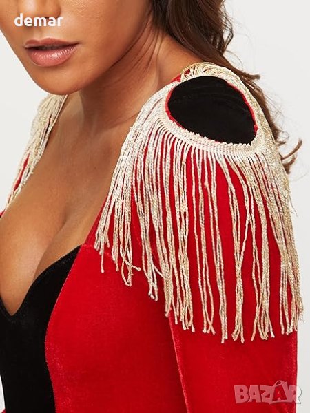Ann Summers Ringmaster Outfit в червено е искрящо кадифено боди с дълги ръкави, предназначено да запали страст и вълнение във вашите лични моменти. Отличава се с провокативно сърцевидно деколте и ресни на раменете за привличащ вниманието външен вид. Работете с него внимателно по време на носене и пране, перете го с подобни цветове и избягвайте бижута, за да запазите качеството му. Този комплект от 3 части включва златен колан и свободна пола под колана, създавайки неустоимо изкушаваща визия, идеална за изпълнение на най-страстните ви фантазии.